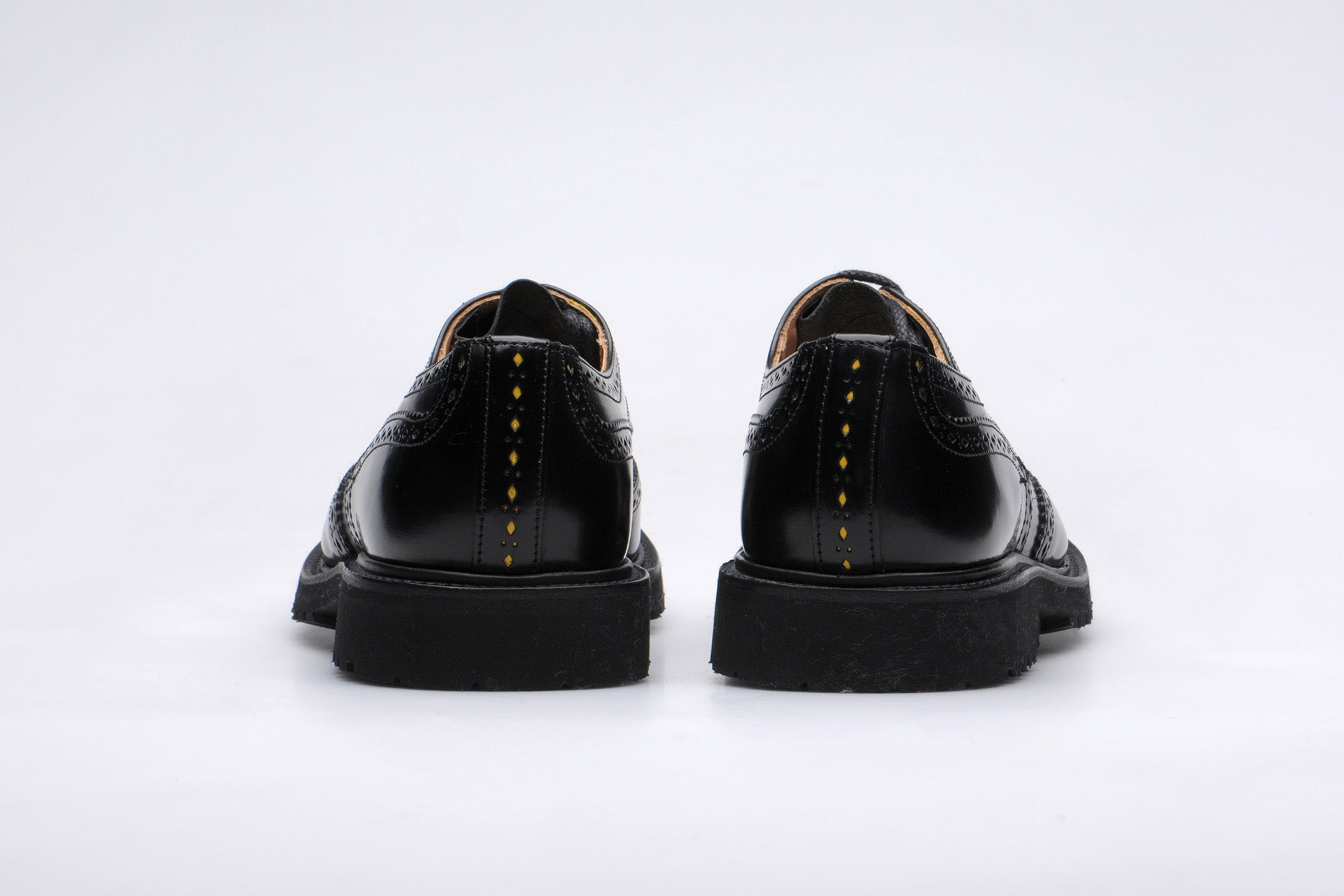 The Bourton is a piece of Northampton shoemaking history, this derby shoe that sports heavy broguing is an icon of country footwear. The perforations on the brogue were originally a functional characteristic positioned to allow water to drain from the shoes but also to allow for ventilation. Wildsmith have subtly updated the design, changing the circular brogue to a diamond which is where the Wildsmith DNA combines beautifully with that of Tricker's. Wildsmith and Tricker’s are famous for producing different types of footwear but this collaboration brings the best of both brands together to create a whole new look.