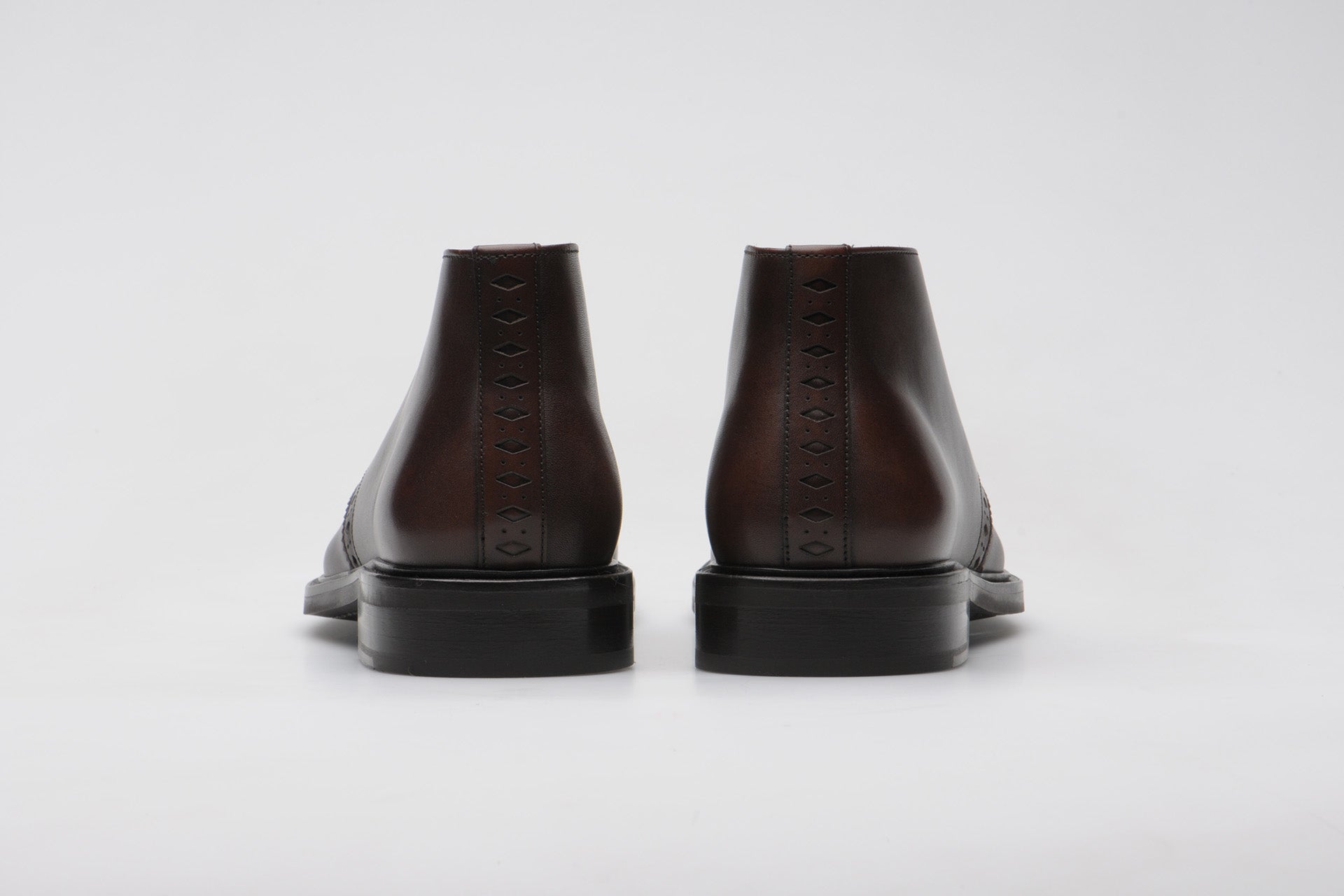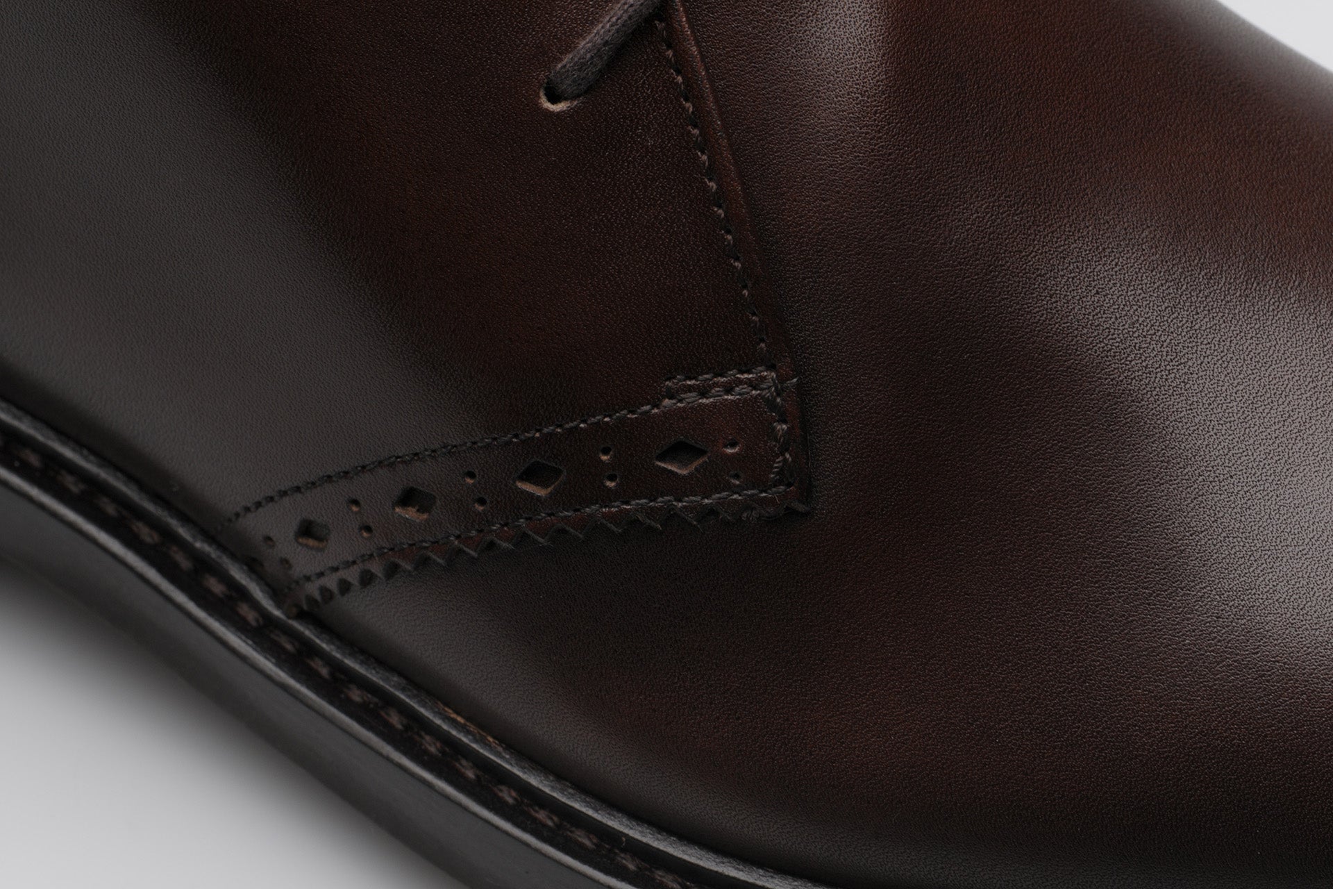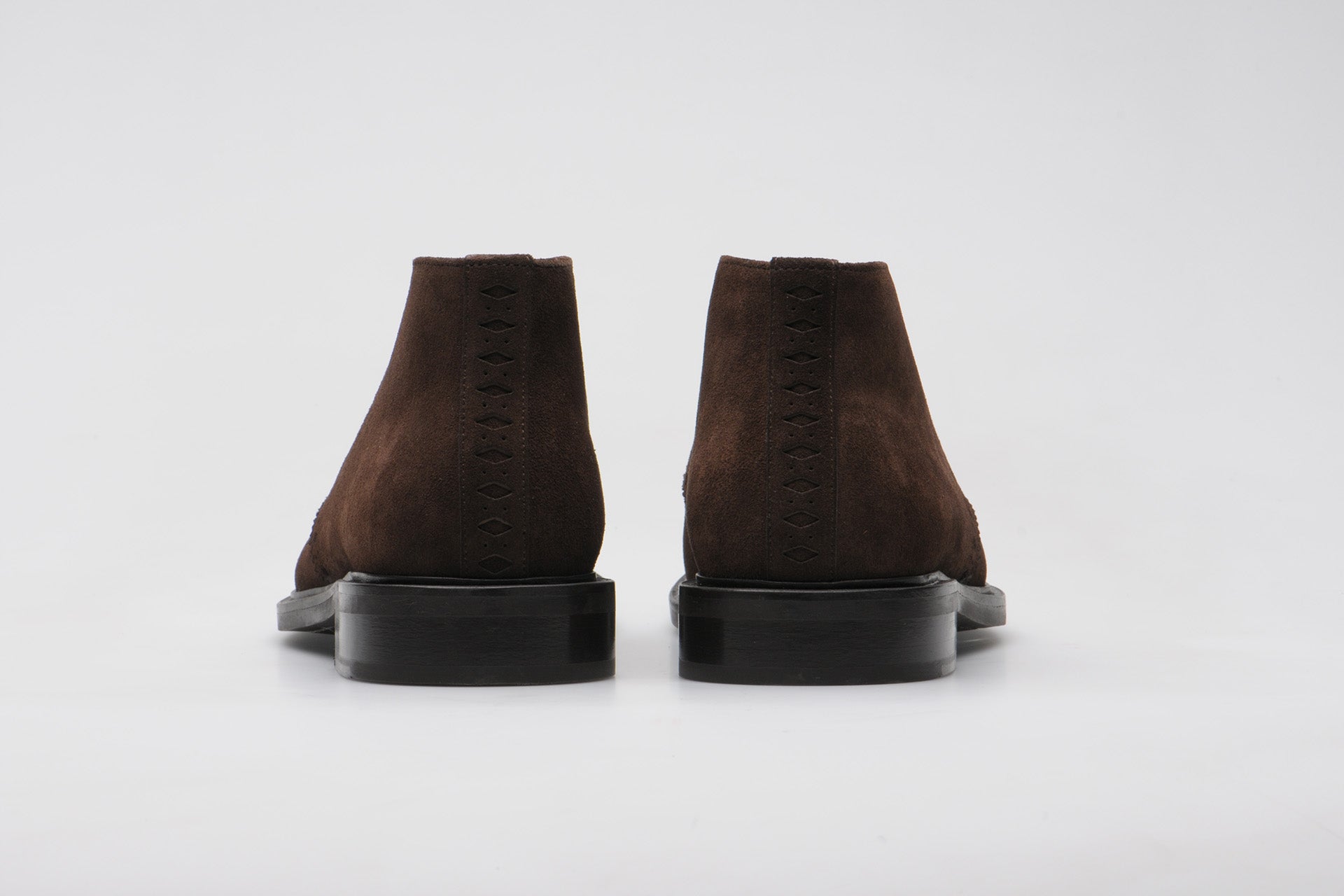 Model 12 was traditionally a crepe-soled boot, designed to compete with the Clark’s desert boot but with three eyelets. Now built on the Wild 5 classic boot last, it features a rubber studded sole and a split welt, combining modern durability with flexibility. This classic Chukka boot offers an effortless style that works seamlessly in town or country. Signature diamond broguing adds a touch of Wildsmith heritage, while the sole ensures comfortable all-day wear.