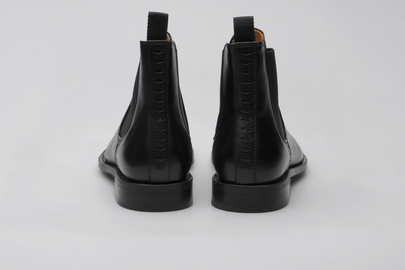 Model 170 is a modern Chelsea boot featuring diamond punching details up the heel and a clean, traditional front. Drawing on Wildsmith’s rich heritage and longstanding association with the Royal Household and the Household Cavalry dating back to the 1840s, this style reflects a timeless, refined silhouette. Crafted on the Wild 5 last — a classic boot last known for its refined shape and comfort — Model 170 uses a light rubber studded sole for all-day wearability.