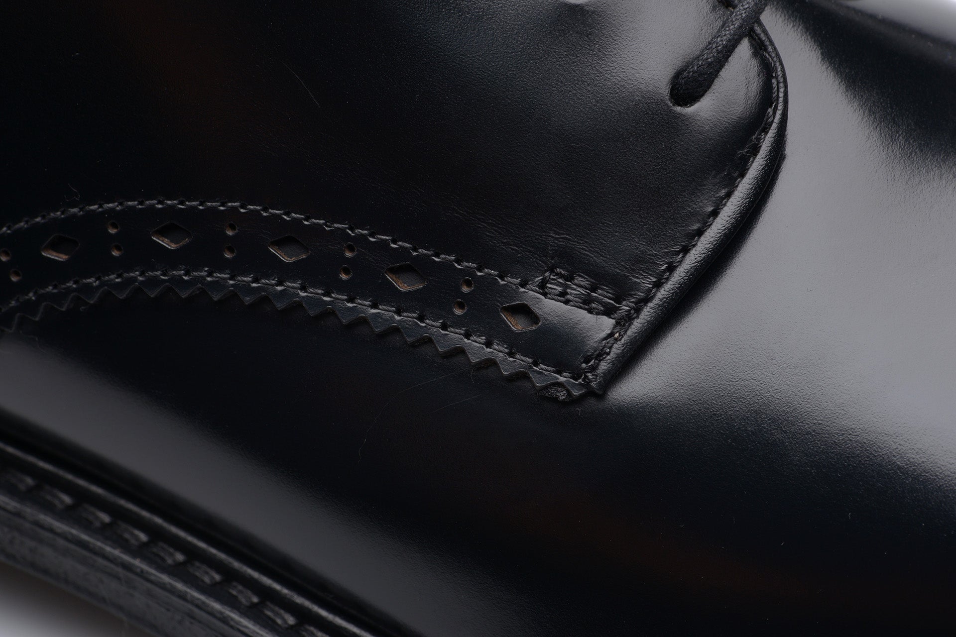 The piped collar pays homage to its heritage, while the diamond brogue on the facings and heel adds a subtle nod to the Wildsmith house codes. Crafted on their country-inspired WILD3 last, the silhouette is generous yet structured — offering a true-to-size fit with an air of relaxed formality.