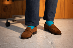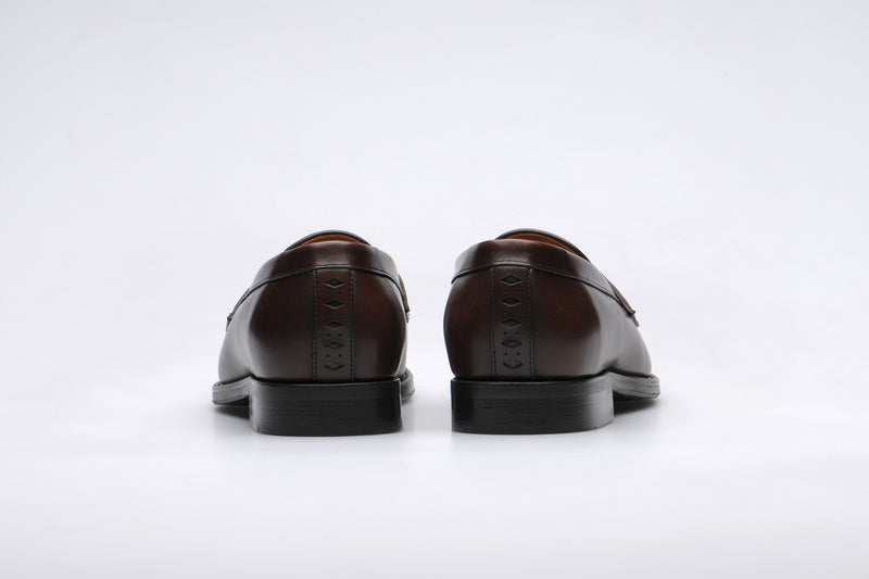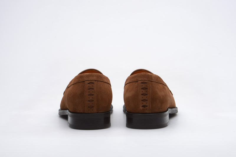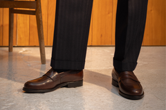 The Model 31 is the younger brother of the Model 98. It is a penny loafer that has many similarities while having its own personality. Our update to this heritage design has a subtle diamond cut-out on the saddle with the Wildsmith diamond brogue detailing on the heel. The WILD 7 last is slightly shorter and rounder over the toe, making it more casual than 98 with a lower profile. This is finished with a rubber sole providing grip and comfort.