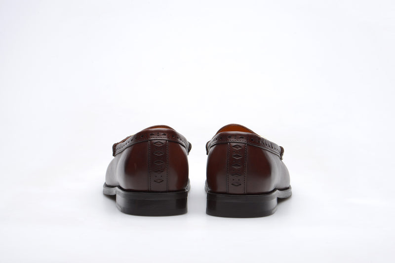 The Model 31 is the younger brother of the Model 98. It is a penny loafer that has many similarities while having its own personality. Our update to this heritage design has a subtle diamond cut-out on the saddle with the Wildsmith diamond brogue detailing on the heel. The WILD 7 last is slightly shorter and rounder over the toe, making it more casual than 98 with a lower profile. This is finished with a leather sole.