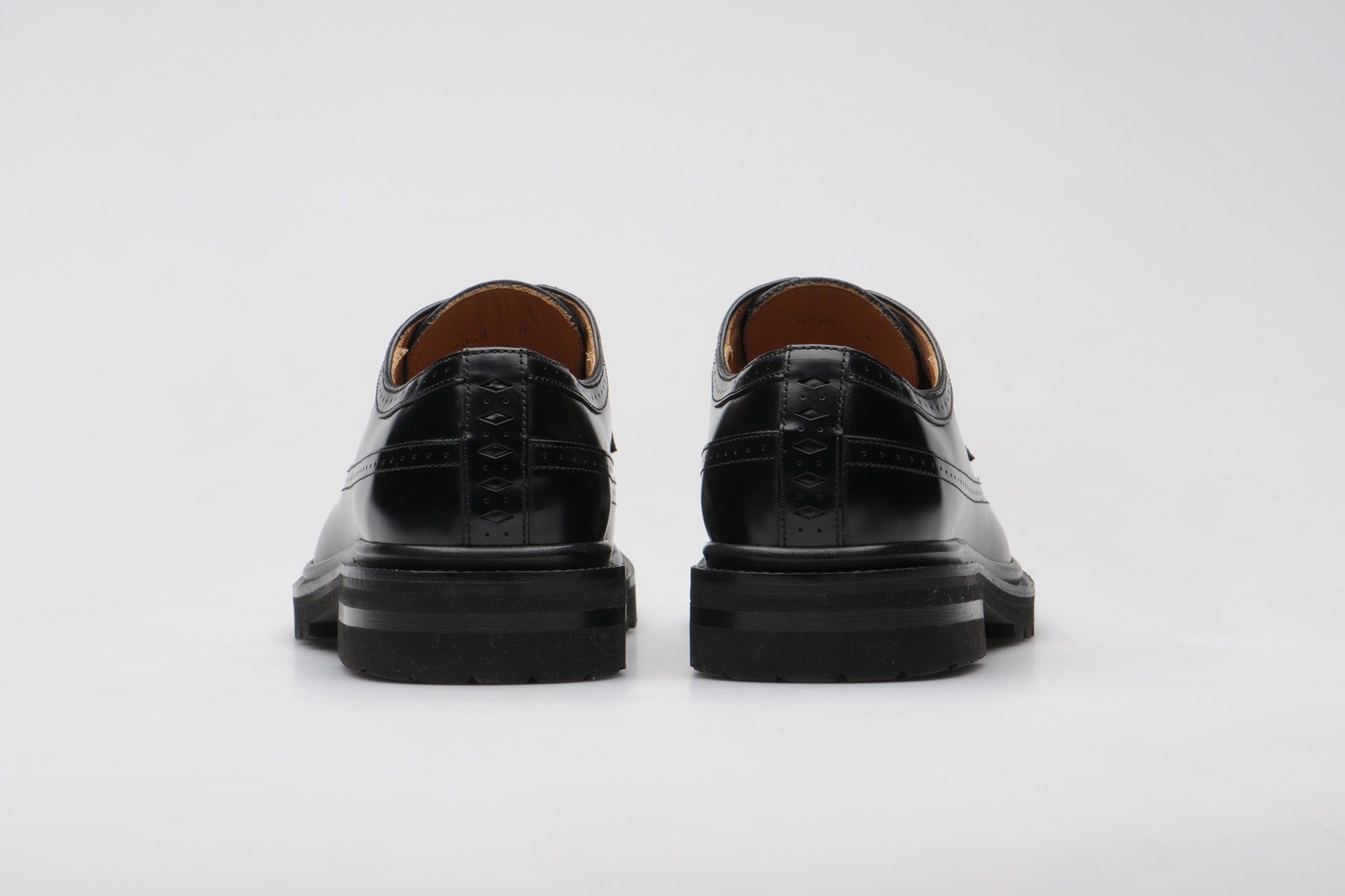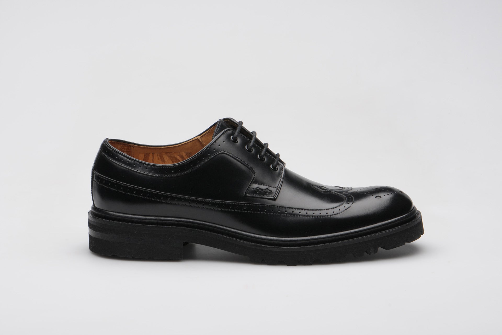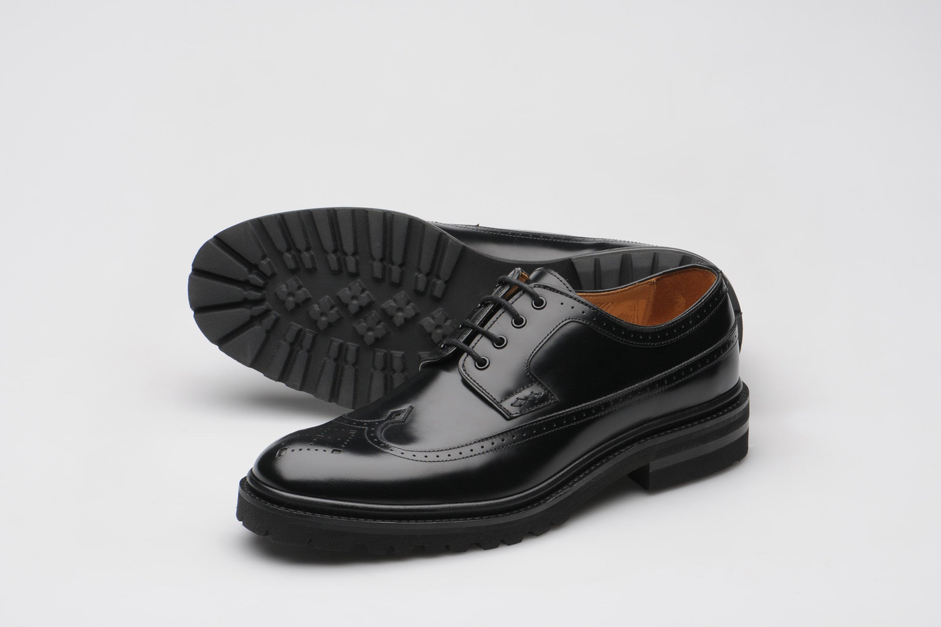 A sturdy country shoe from the Wildsmith archive, Model 43 was traditionally built on a double-thickness leather sole. Now crafted on our rounder WILD 3 last, this Derby brogue features a lightweight cleated sole with a rubberised welt for a contemporary update. A long-wing silhouette, signature diamond toe-rose punch, and delicate pin broguing complete the heritage-inspired design.