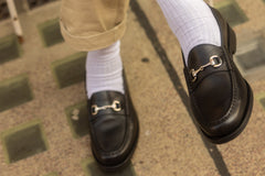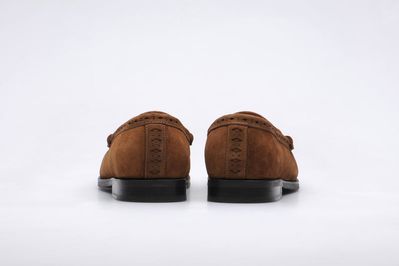 Model 53 is a loafer inspired by our heritage designs while taking influence from American Italian loafers from the 1950’s. The snaffle-bit detailing adds a sophisticated versatility to any look bridging that smart and casual divide. Model 53 is on last WILD 4 which is an American moccasin last, giving this a typically shorter vamp. To cement our DNA onto this style it features our iconic diamond punching around the collar and heel strip and placed it on a hybrid rubber sole for grip and comfort. The snaffle-bit loafer’s popularity is unwavering through ever changing trends, transcending seasonal changes and yearly trends, making 53 a true classic.