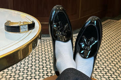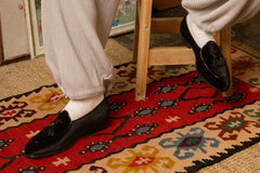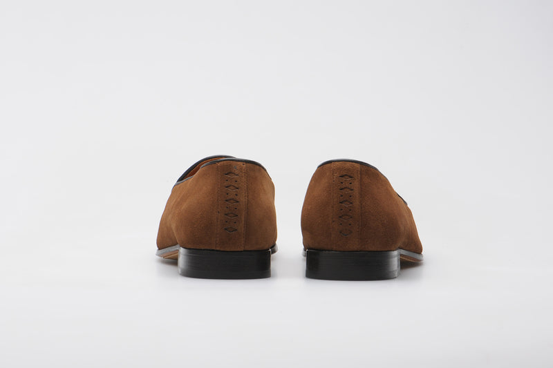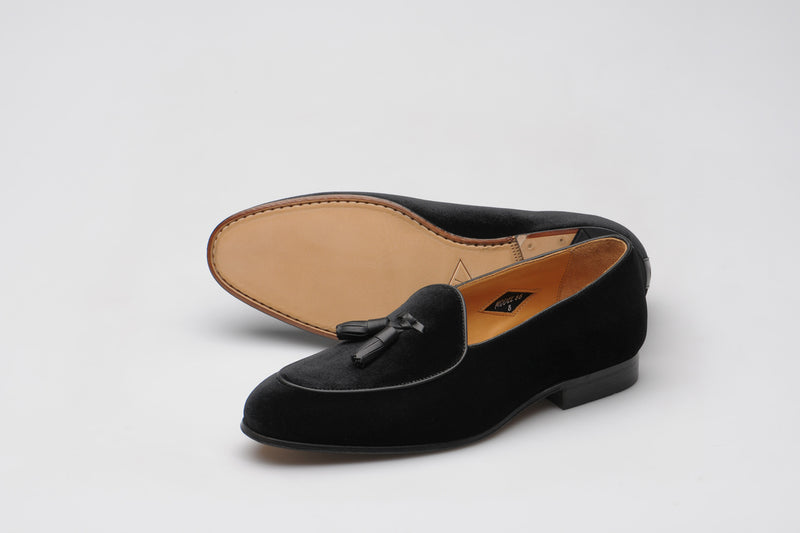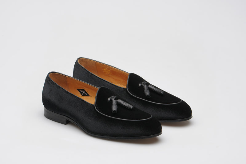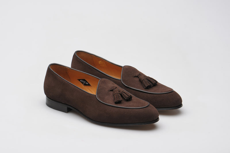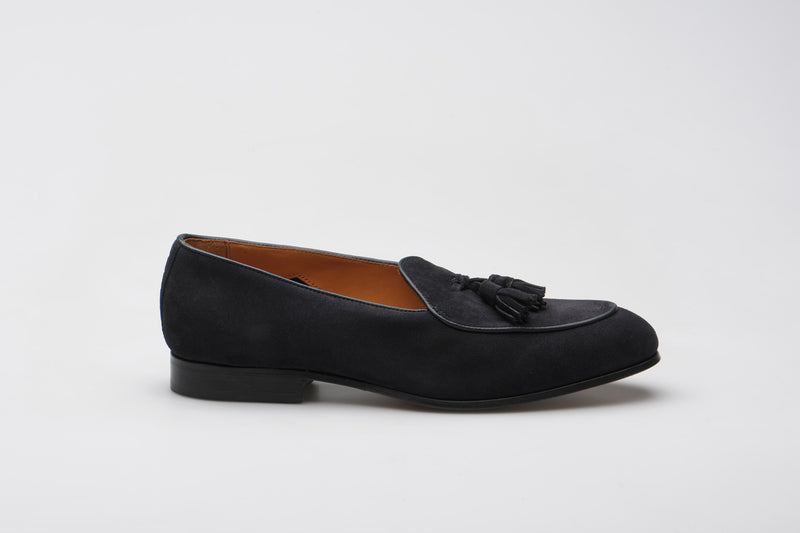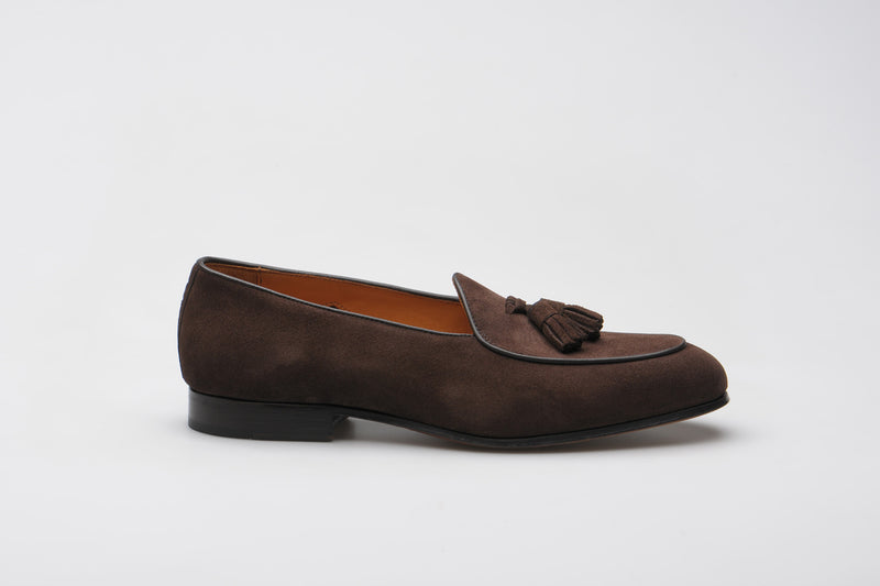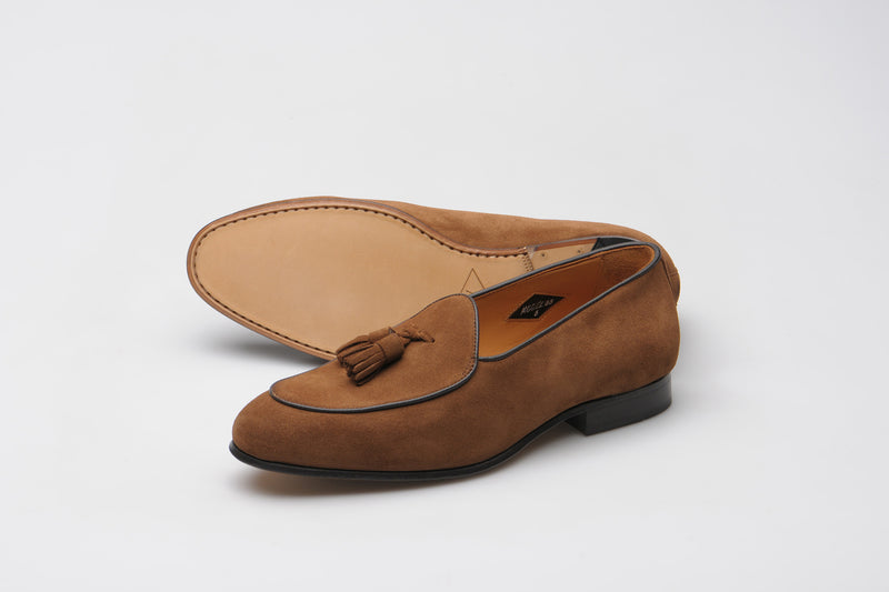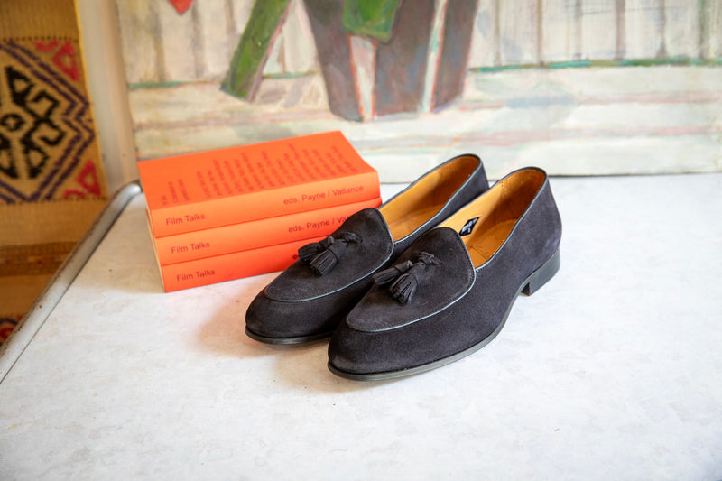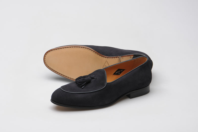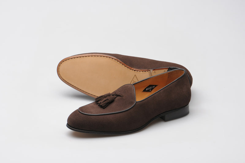 Model 88 is a refined evolution of the original Wildsmith loafer — lighter, sleeker, and subtly influenced by the Belgian tassel loafer. While Model 98 was built for the house and “over the way”, Model 88 leans into that house-shoe sensibility: soft, unstructured, and ideal for occasion wear or light duties.
