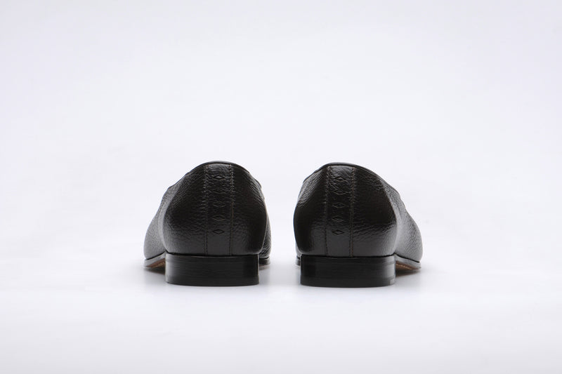 Subtle diamond broguing runs up the heel in an otherwise minimalist upper, preserving clean lines. With its slipper-like profile, tapered shape, and variety of colours and contrast options, it brings quiet flair to refined rotations