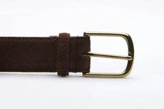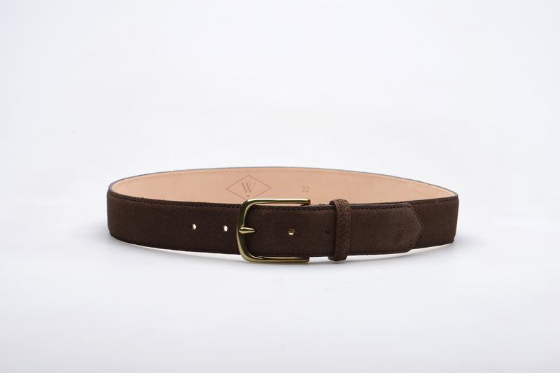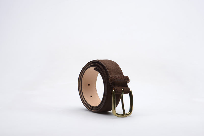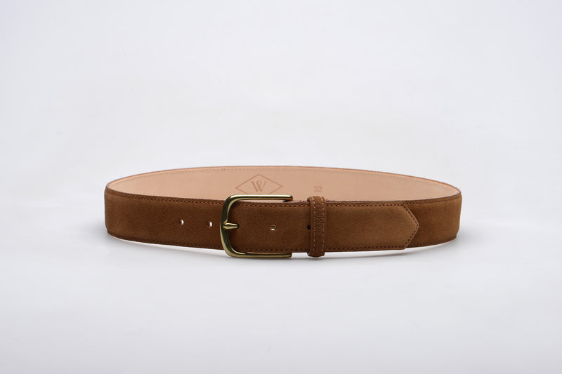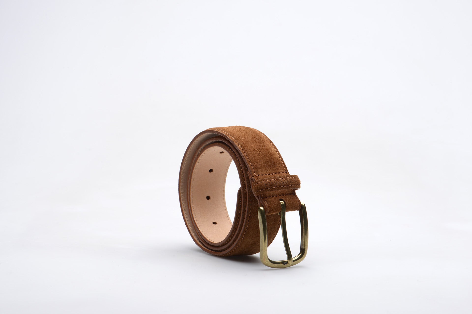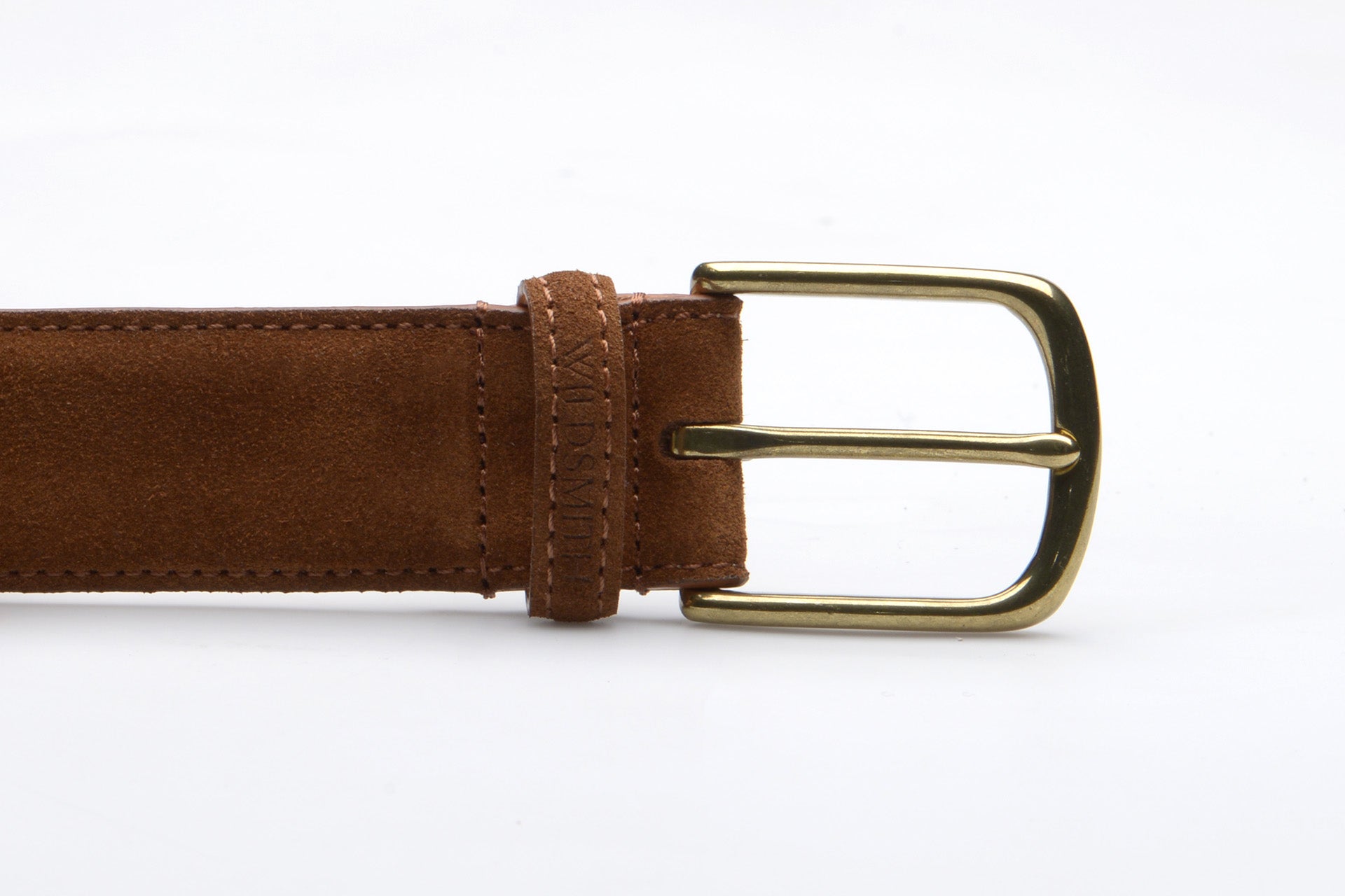 The Wildsmith Suede Belt is handmade from soft suede leather, finished with a thick edge stitch for subtle definition. At 35mm wide, it sits comfortably with both tailored and casual wear.